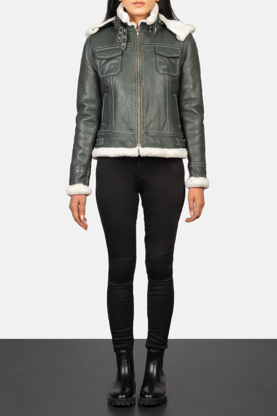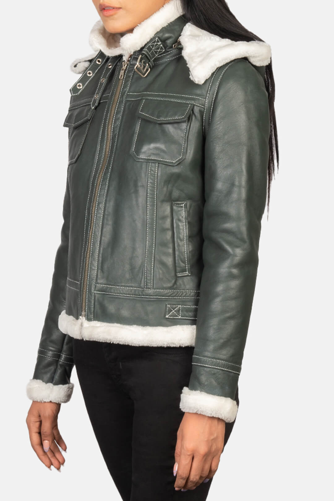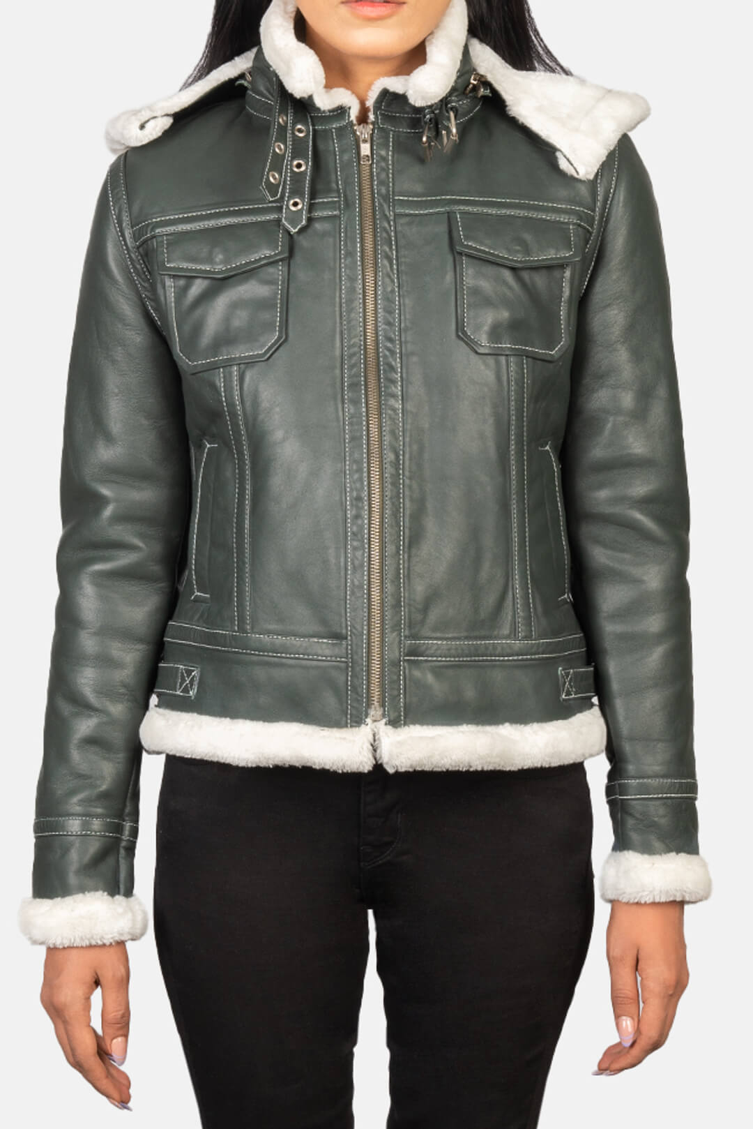 Fiona Green Hooded Shearling Leather Jacket