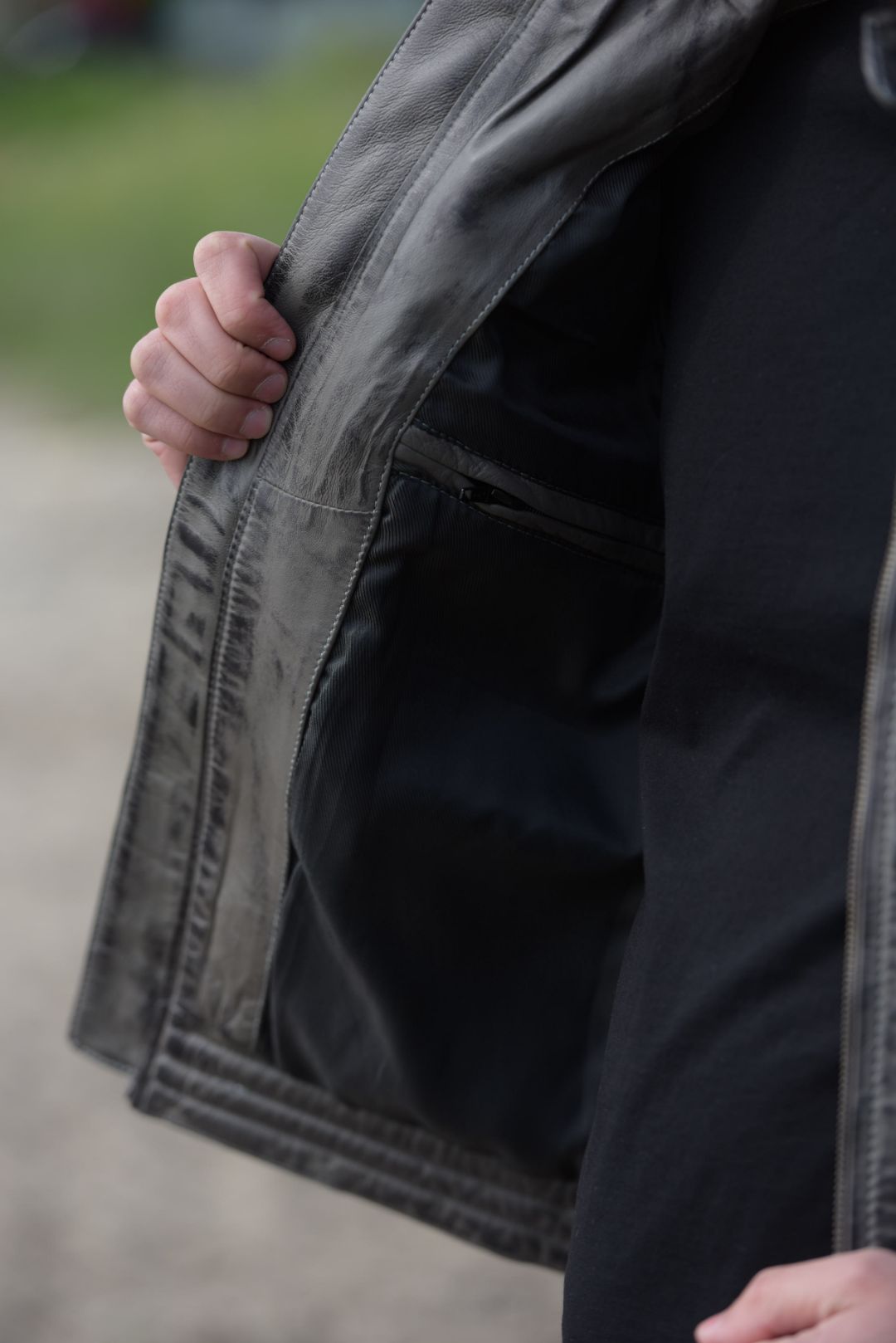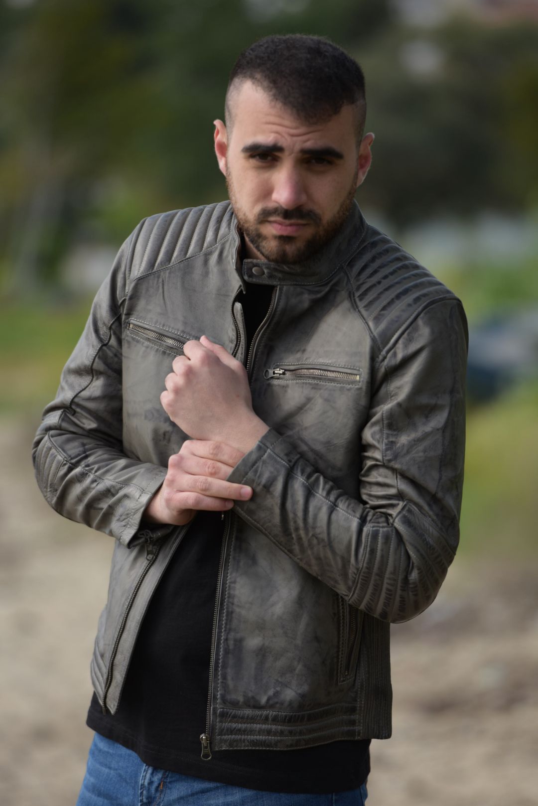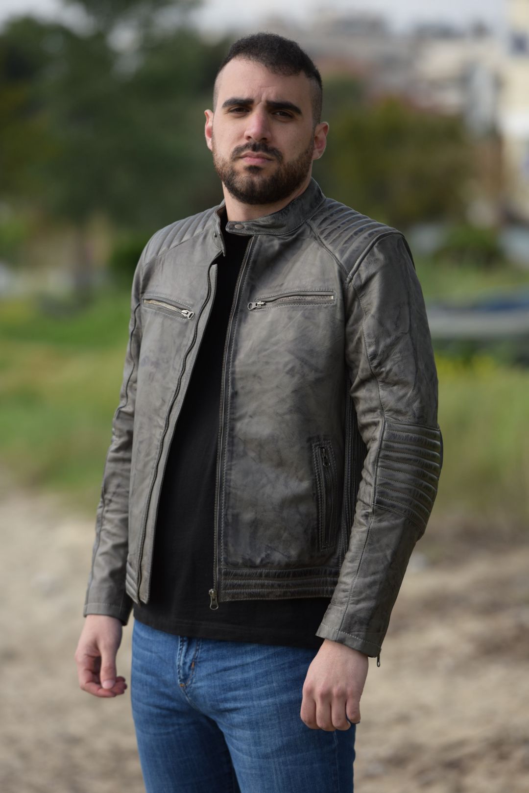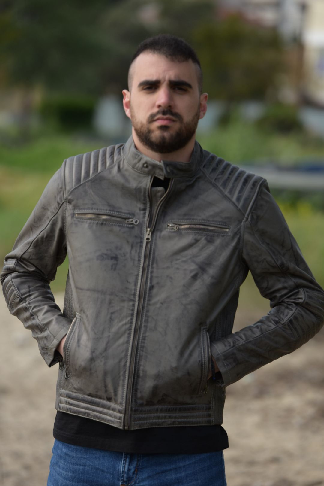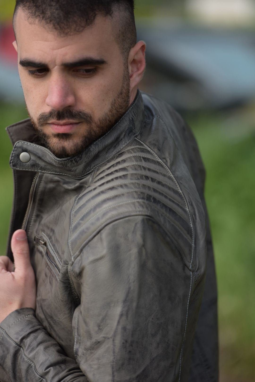 • Ανδρικό μπουφάν από γνήσιο αρνί δέρμα σε στενή γραμμή.