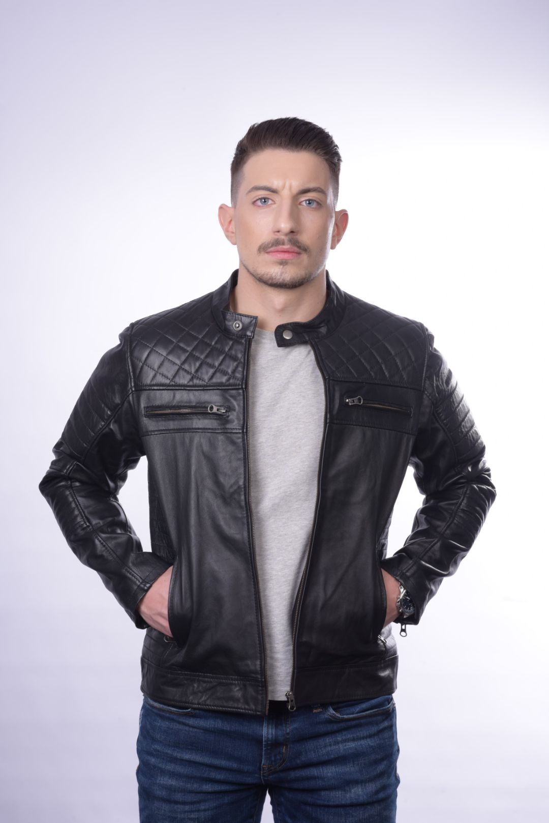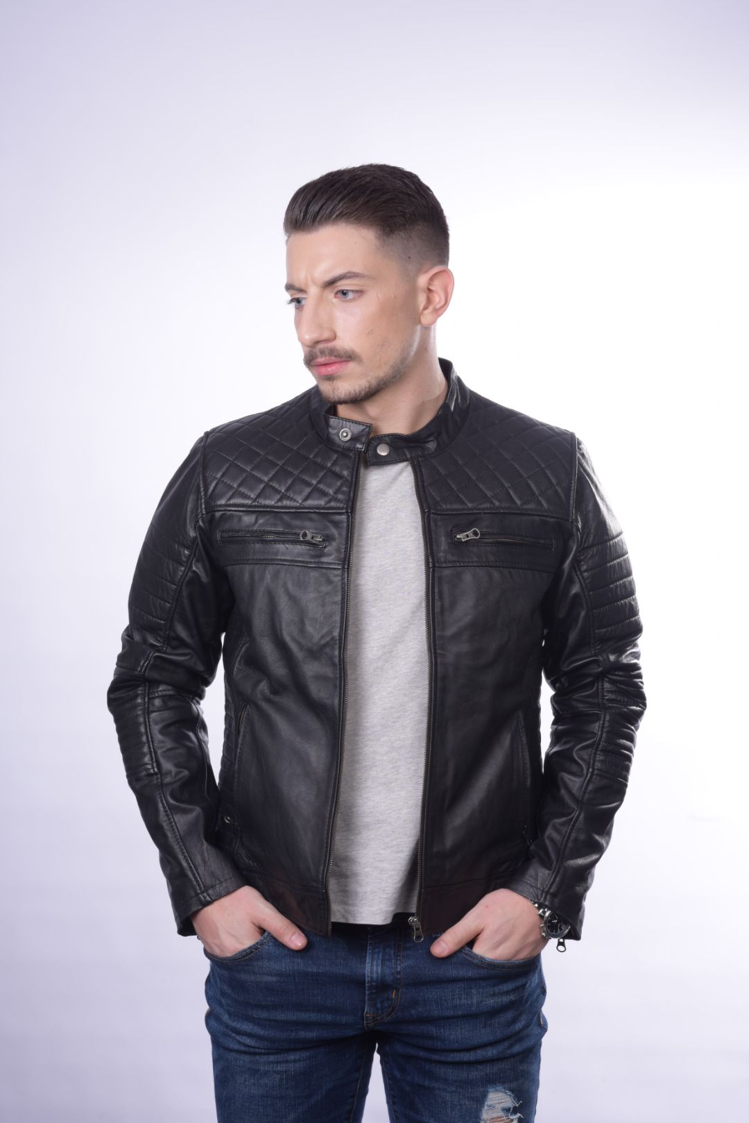 • Ανδρικό μπουφάν από γνήσιο αρνί δέρμα.
