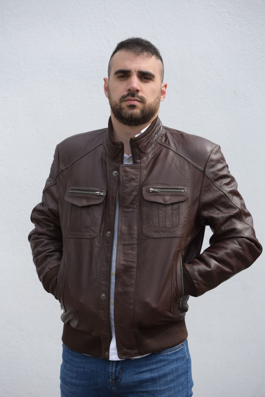 • Ανδρικό bomber τζακετ με πλεκτό λάστιχο στα μανίκια και στην μέση.