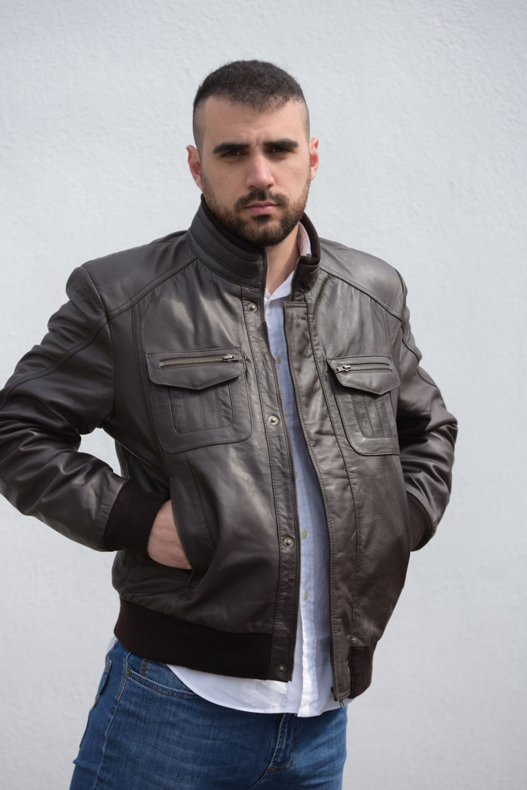 • Ανδρικό bomber τζακετ με πλεκτό λάστιχο στα μανίκια και στην μέση.