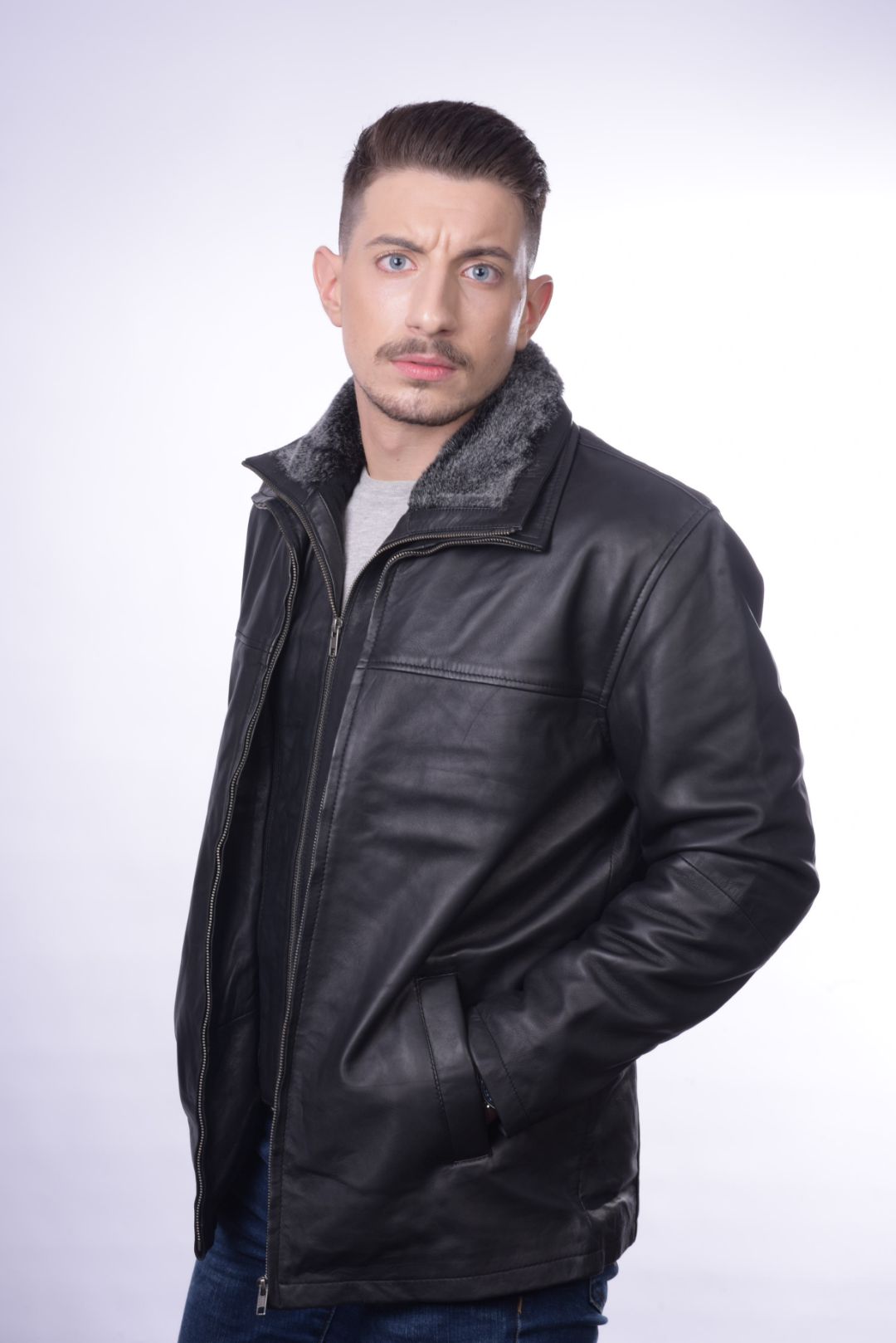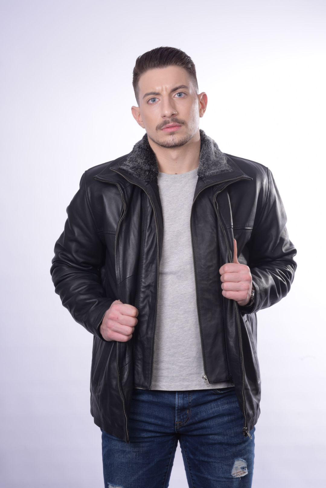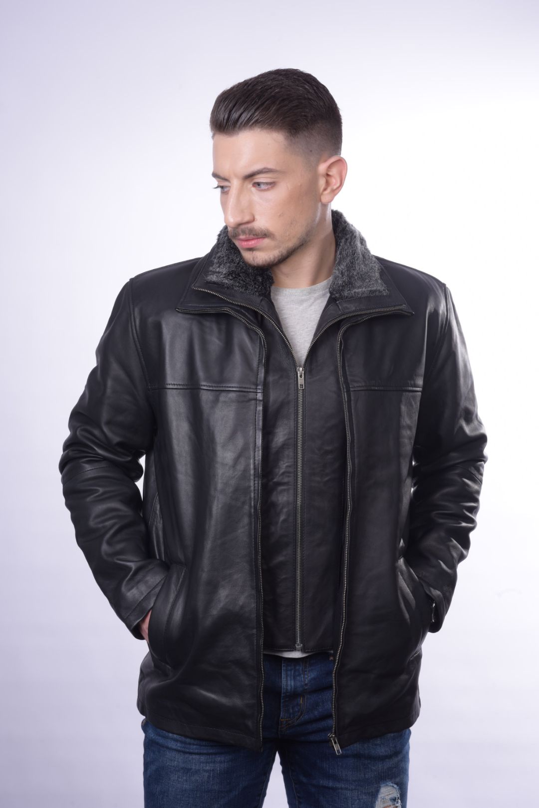 • Ανδρικό μπουφάν από γνήσιο αρνί δέρμα.
