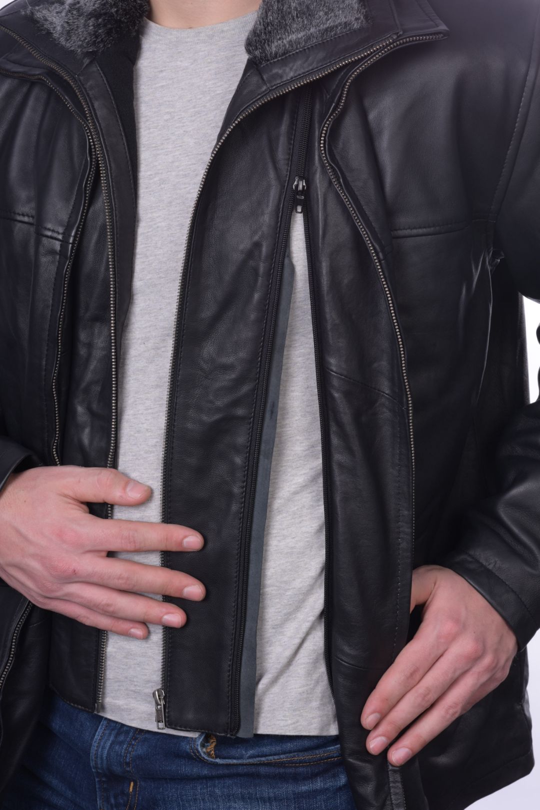 • Αποσπώμενο εσωτερικό κομμάτι δέρματος,συμπεριλαμβανομένης και της γούνας στο γιακά, περιμετρικά του ρούχου.