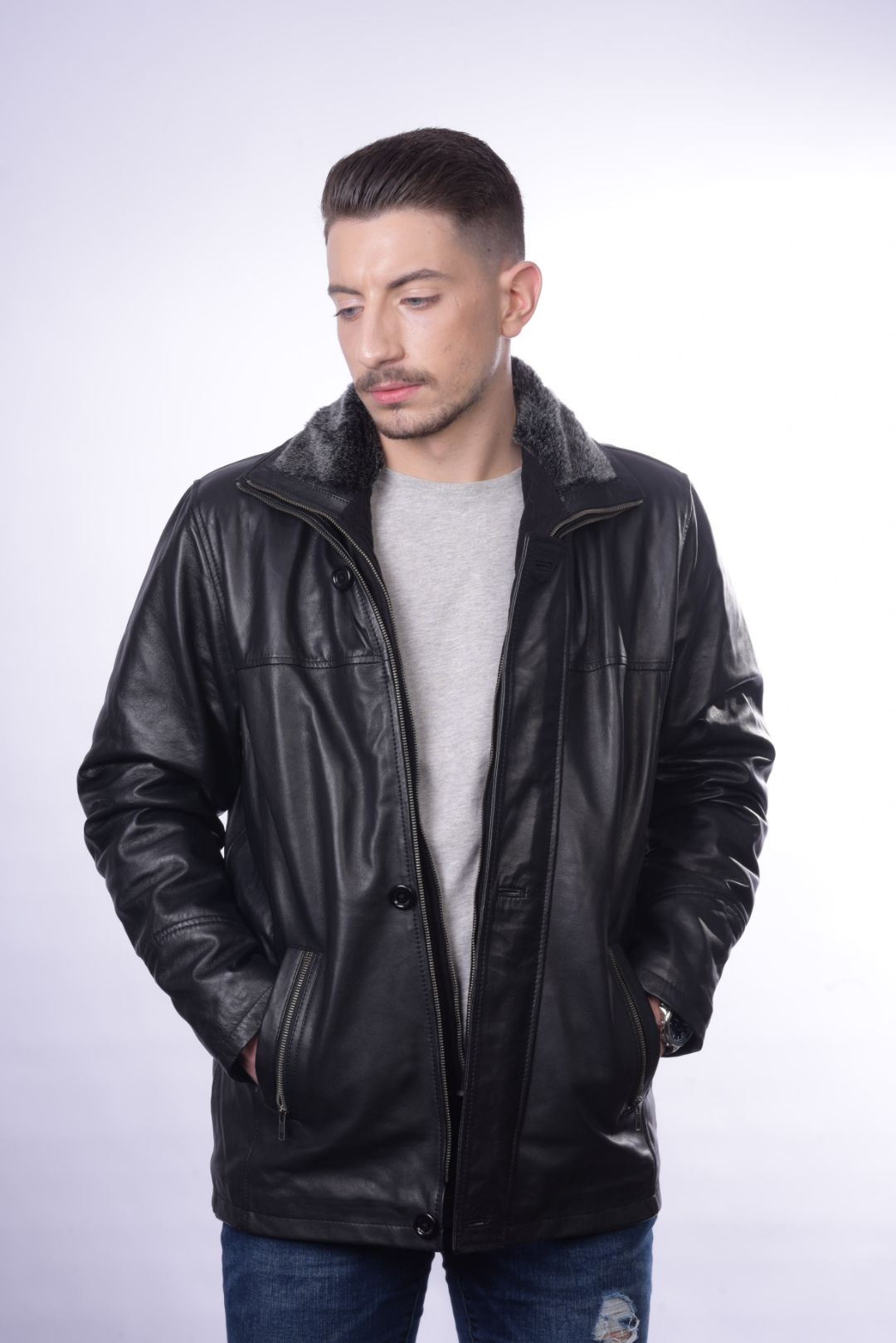 • Ανδρικό τζάκετ από αρνί δέρμα.