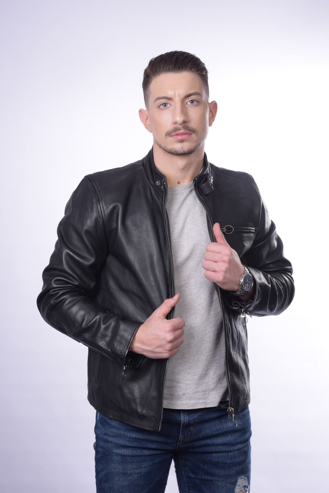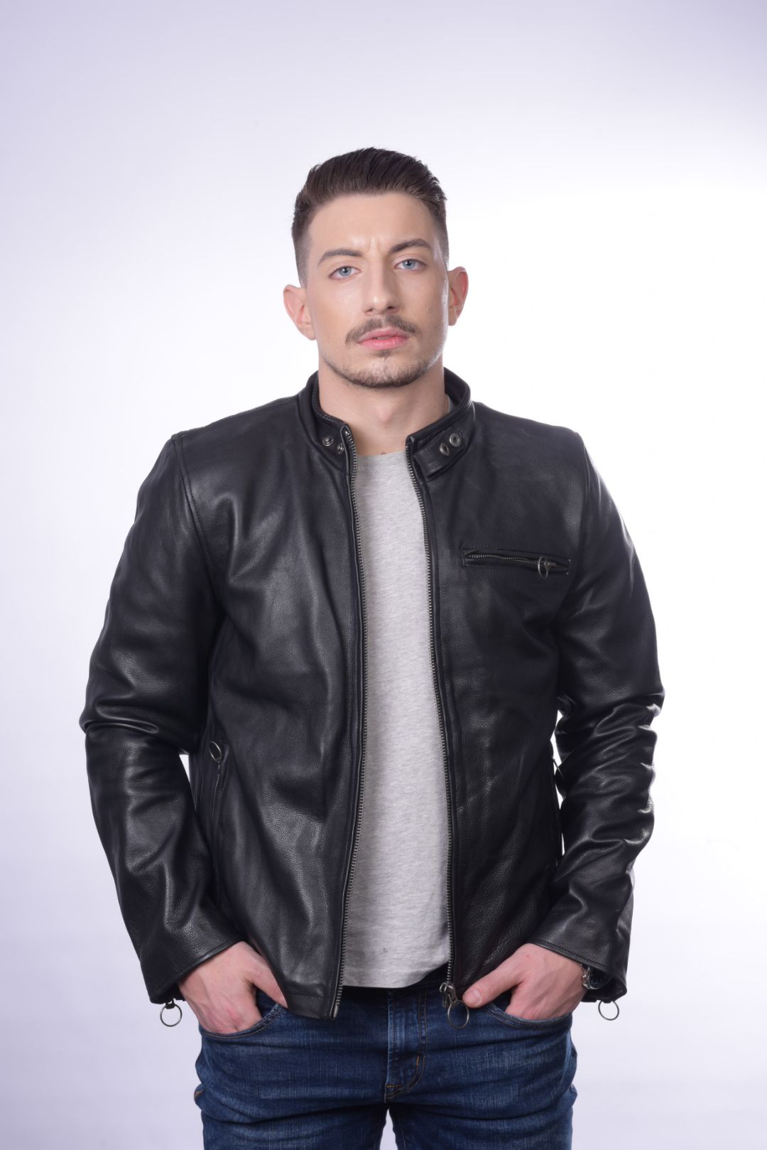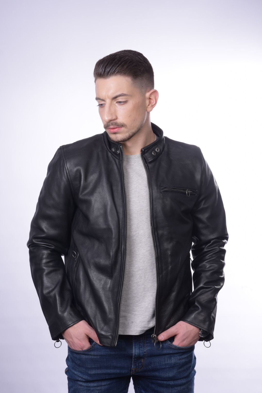 • Ανδρικό μπουφάν από γνήσιο μοσχάρι δέρμα.