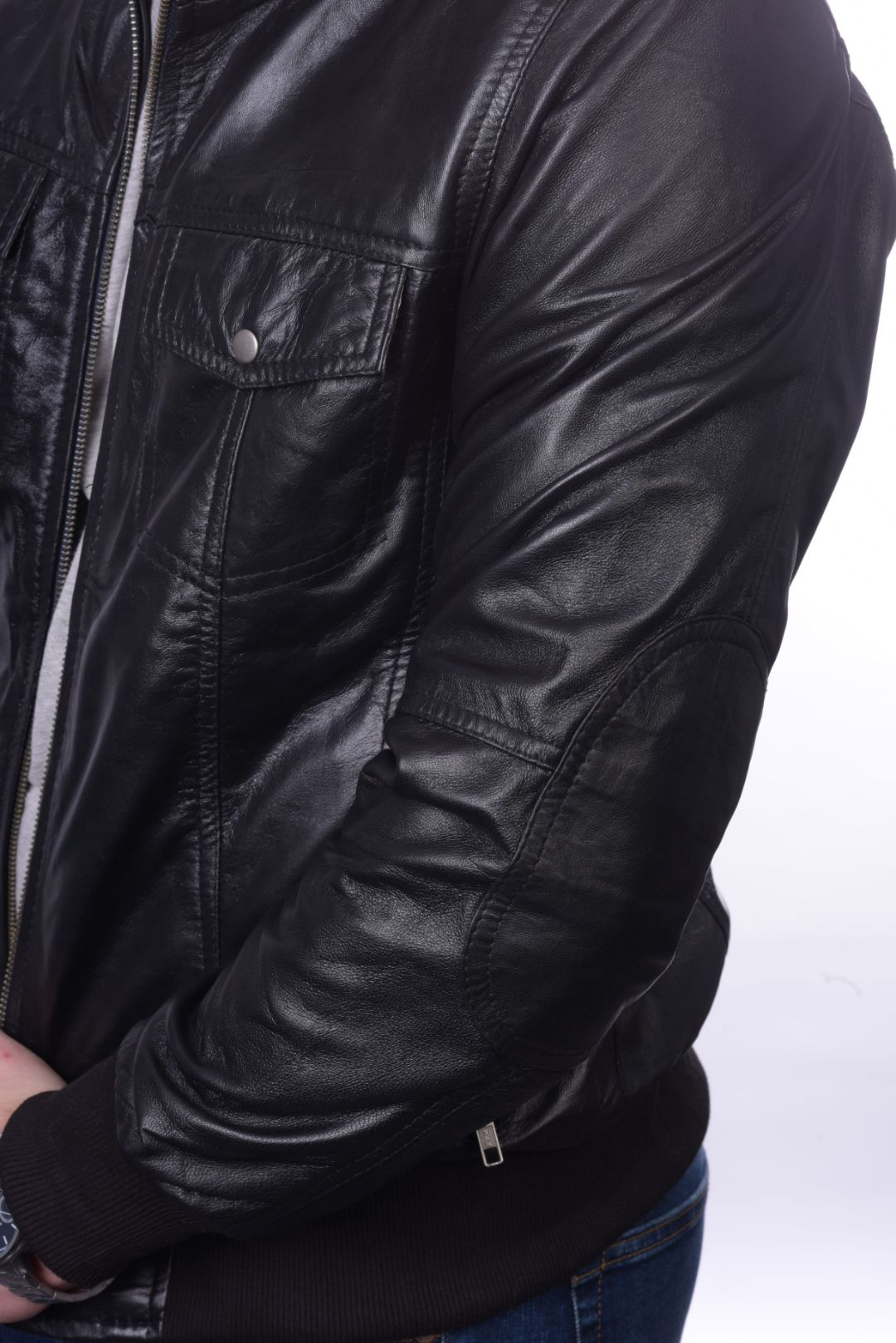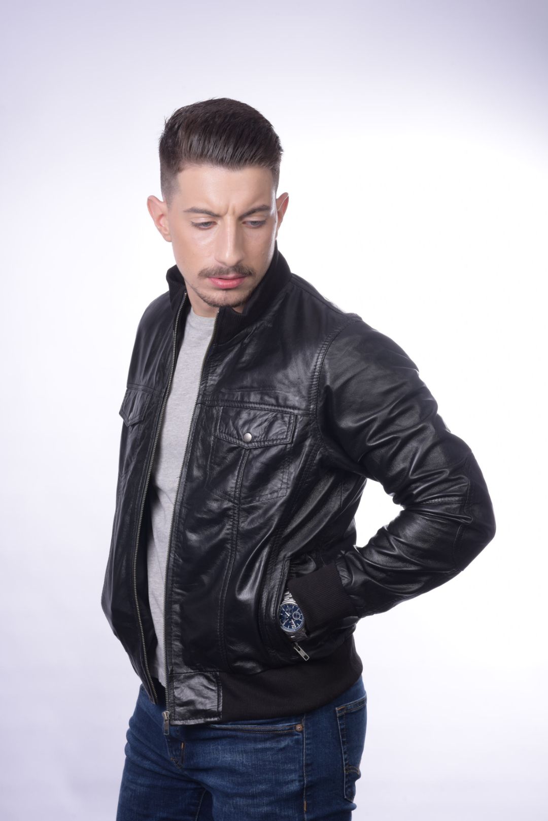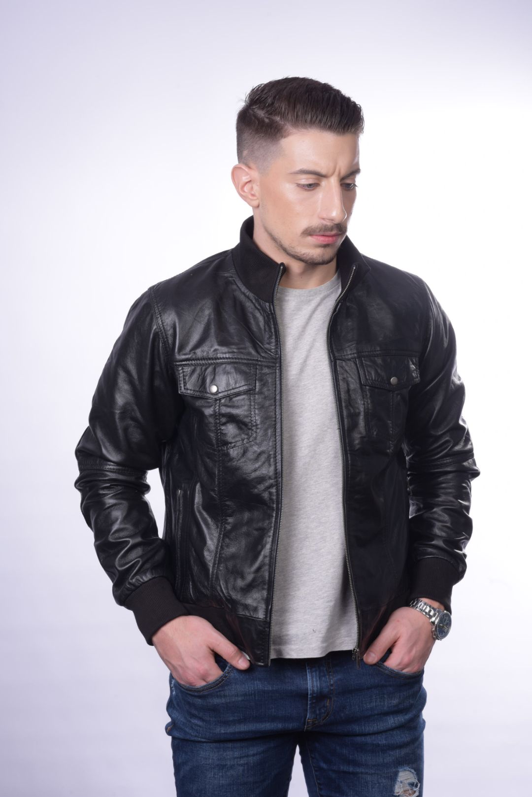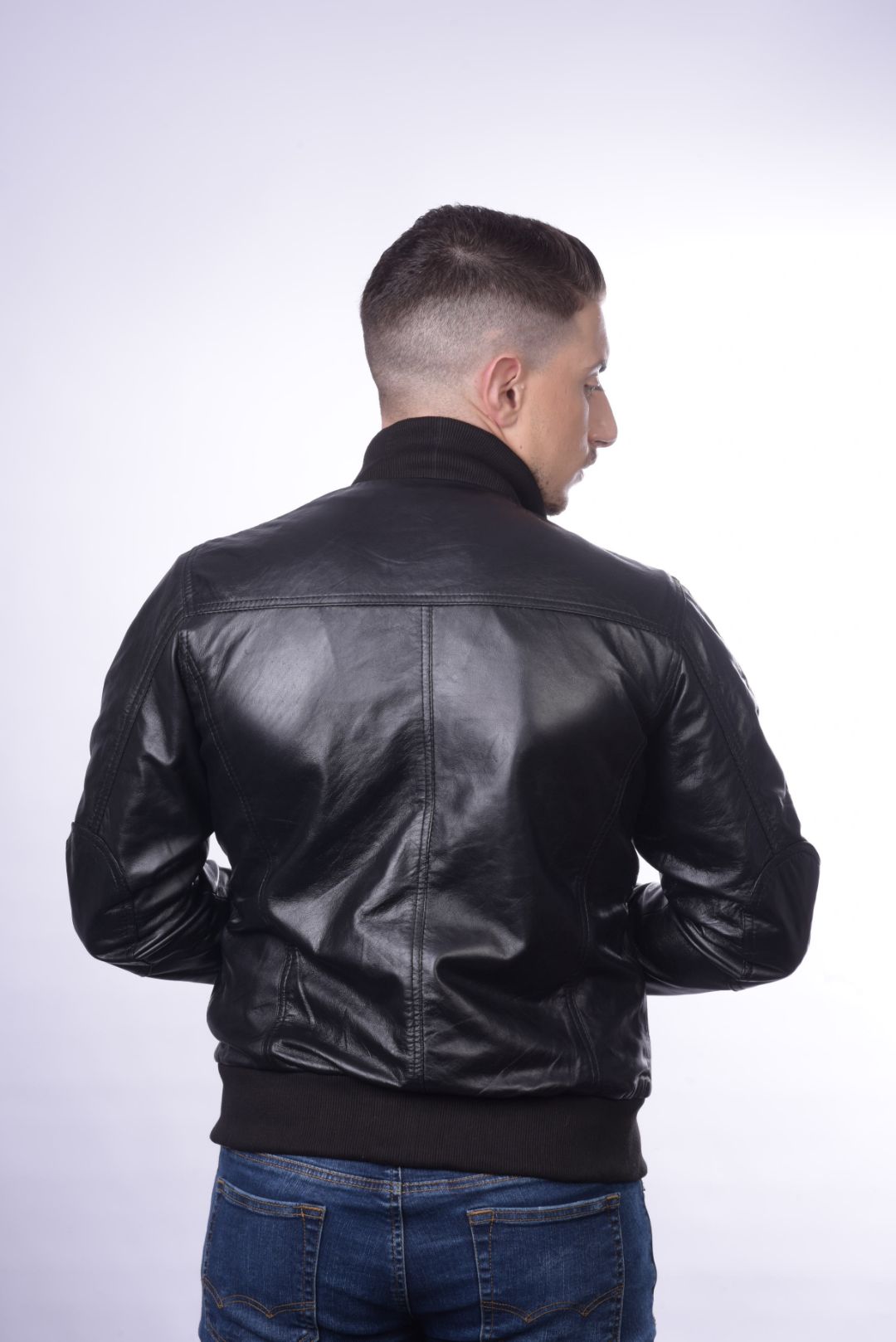 • Ανδρικό bomber τζάκετ από γνήσιο αρνί δέρμα σε στενή γραμμή.