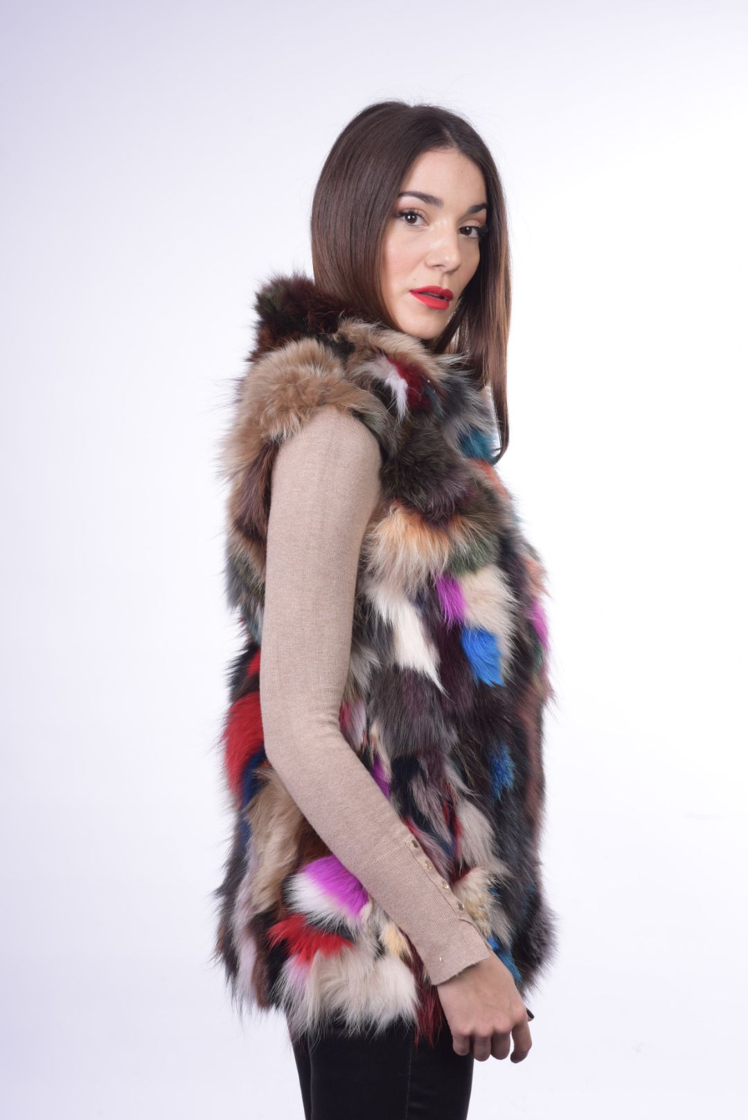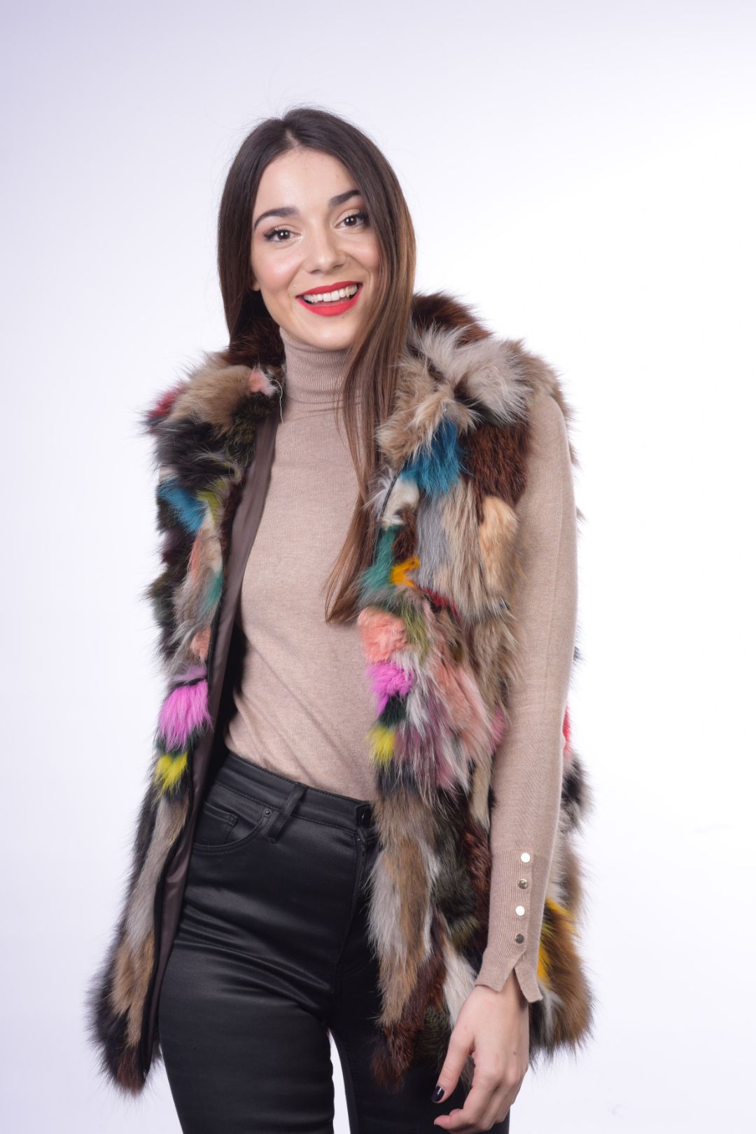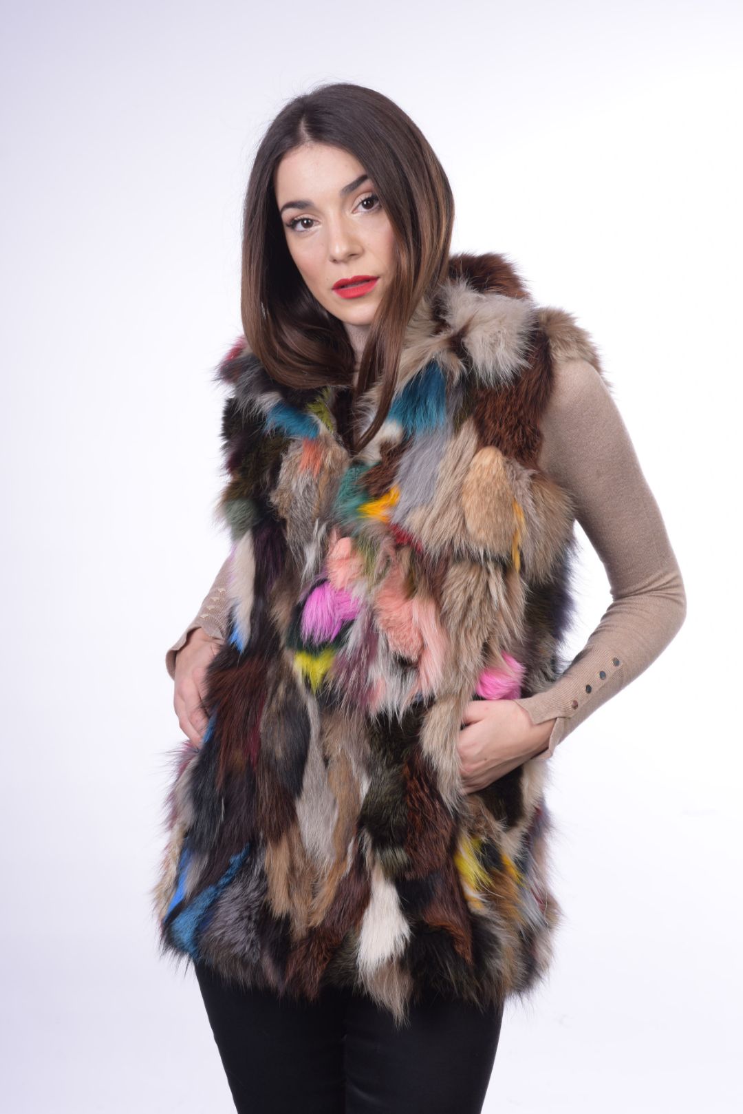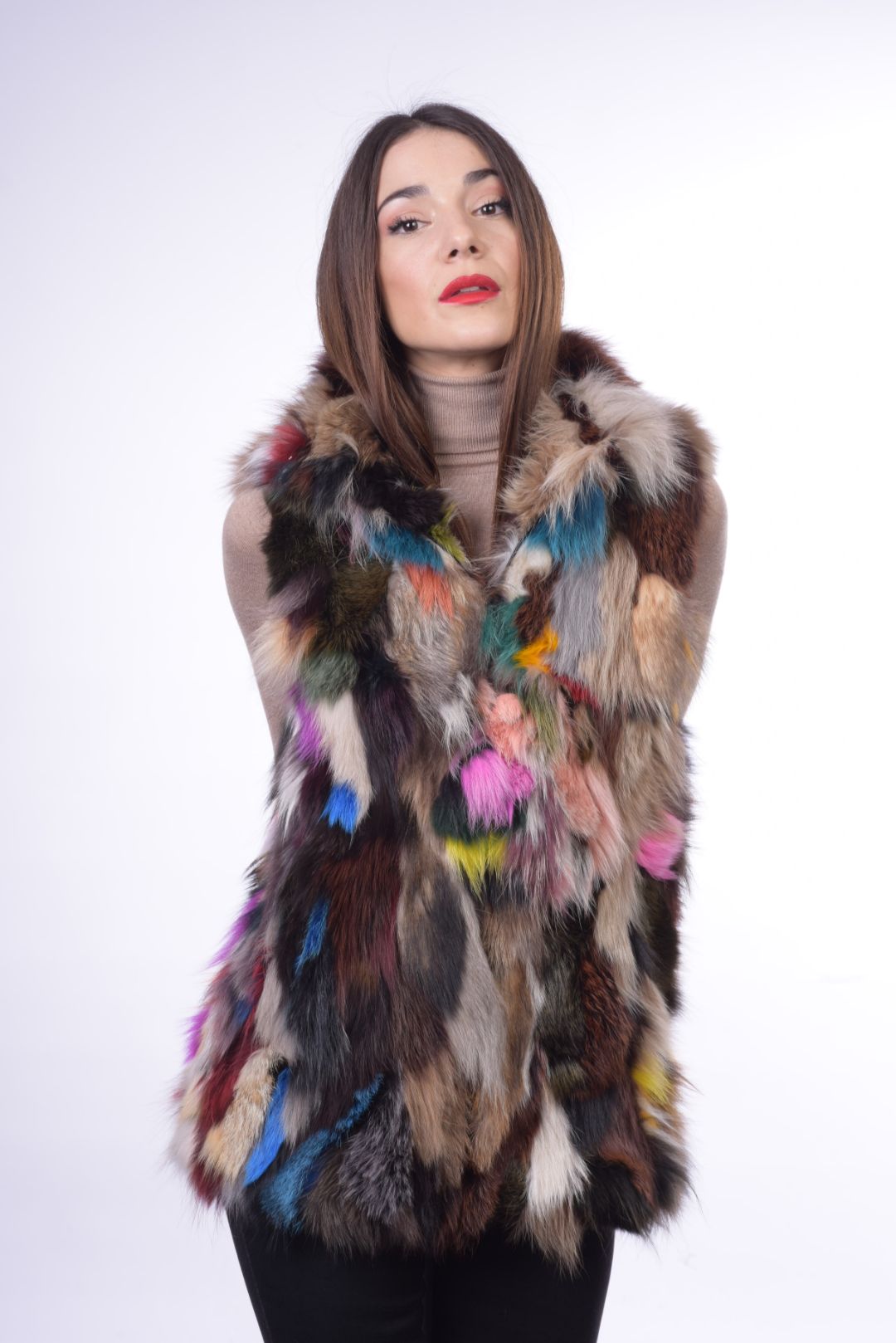 • Μακρύ γιλέκο από γούνα ρακούν.