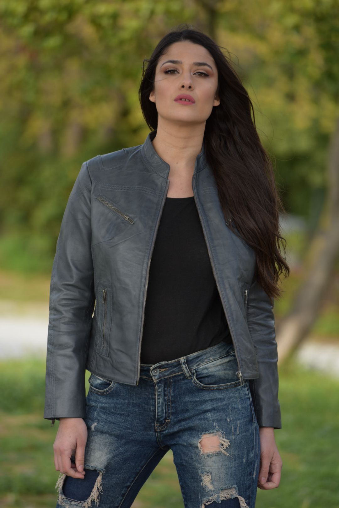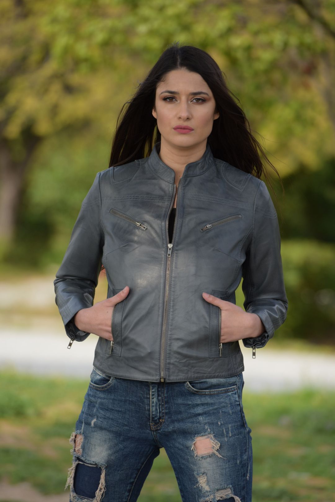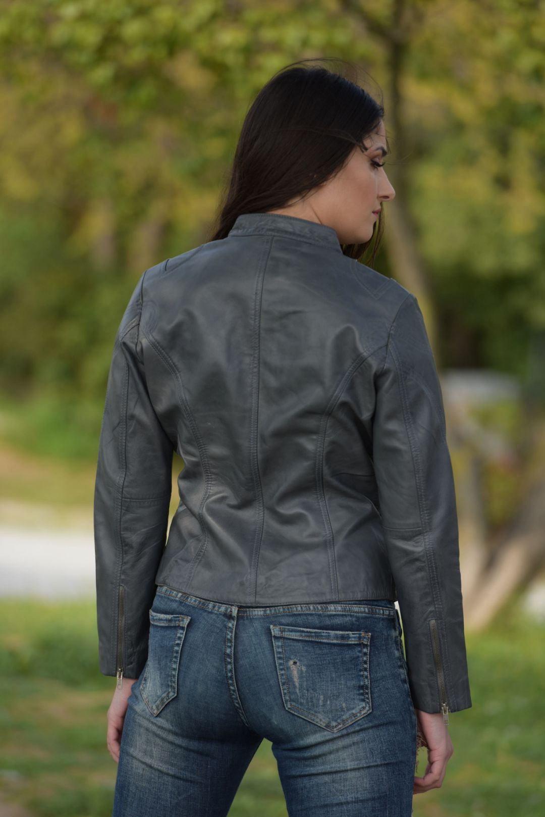 • Γυναικείο μπουφάν από αρνί δέρμα σε στενή γραμμή.