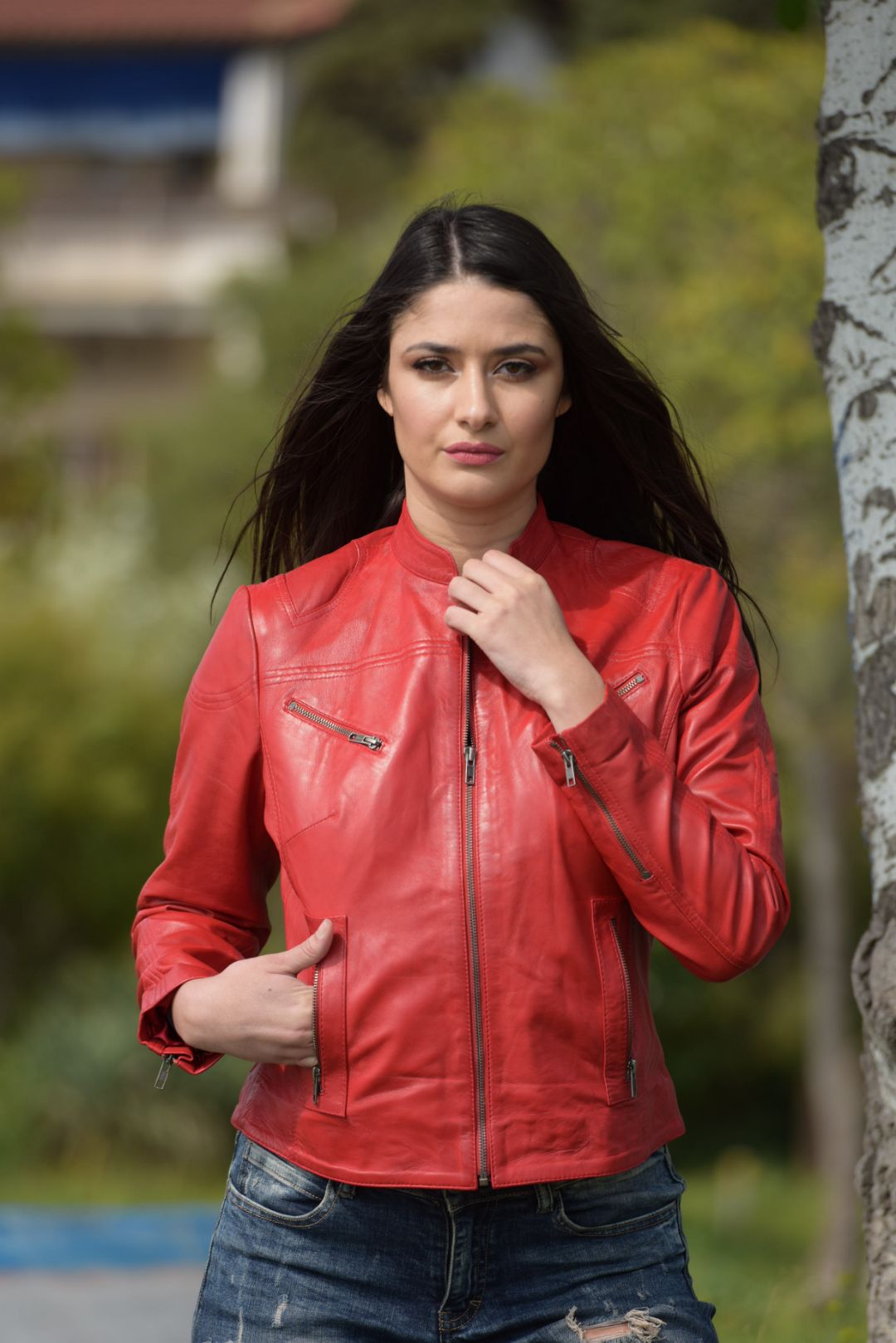 • Γυναικείο μπουφάν από αρνί δέρμα σε στενή γραμμή.