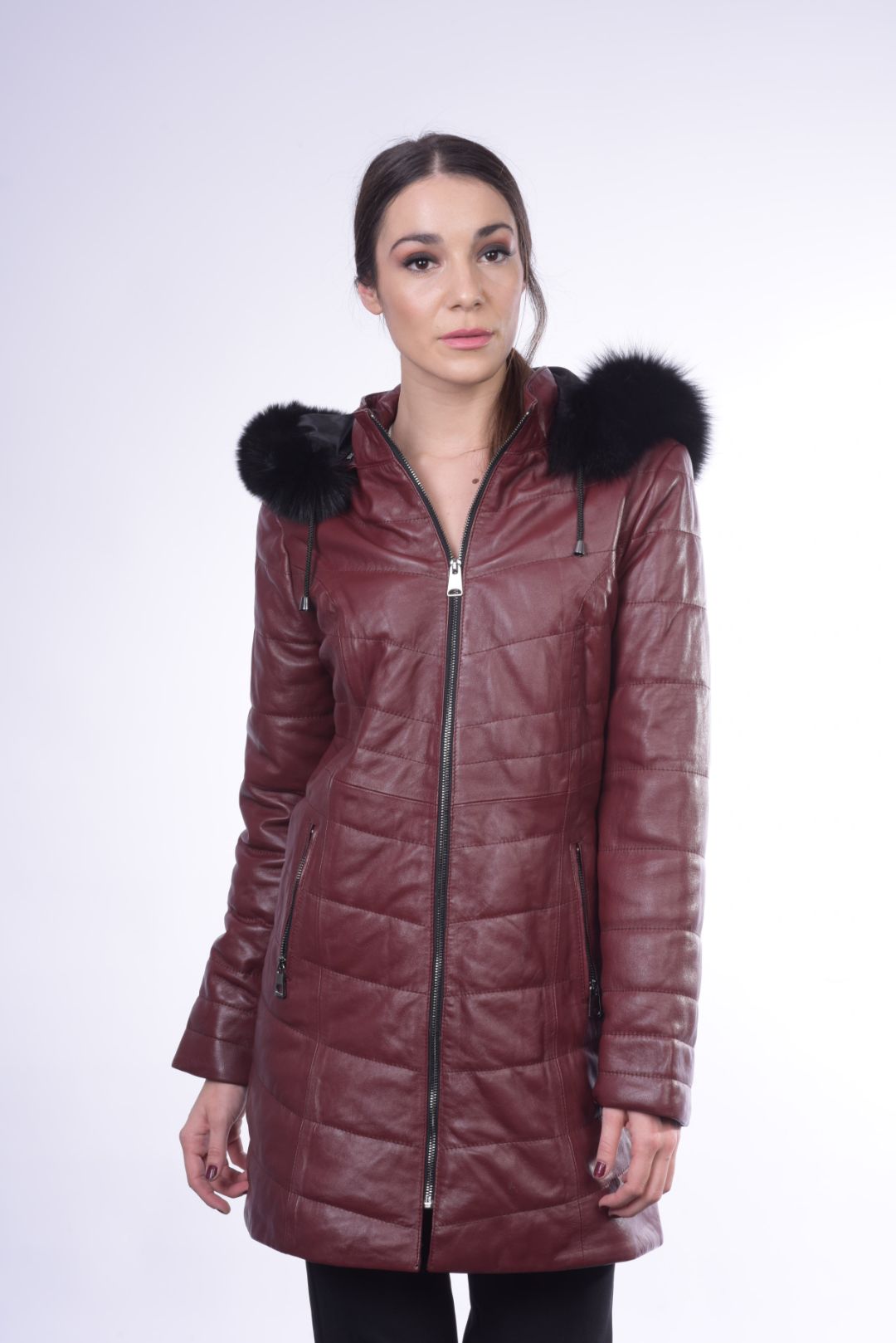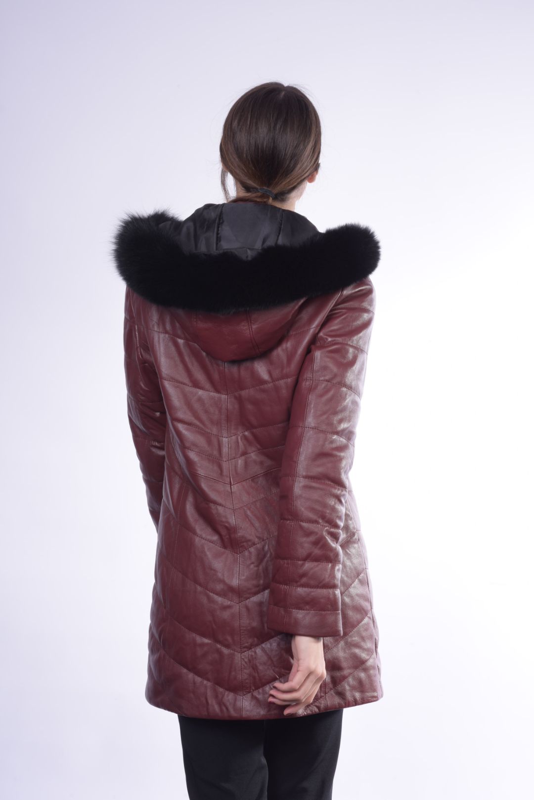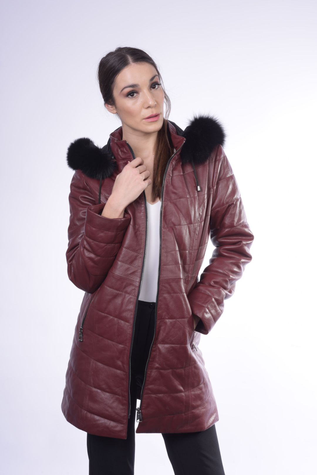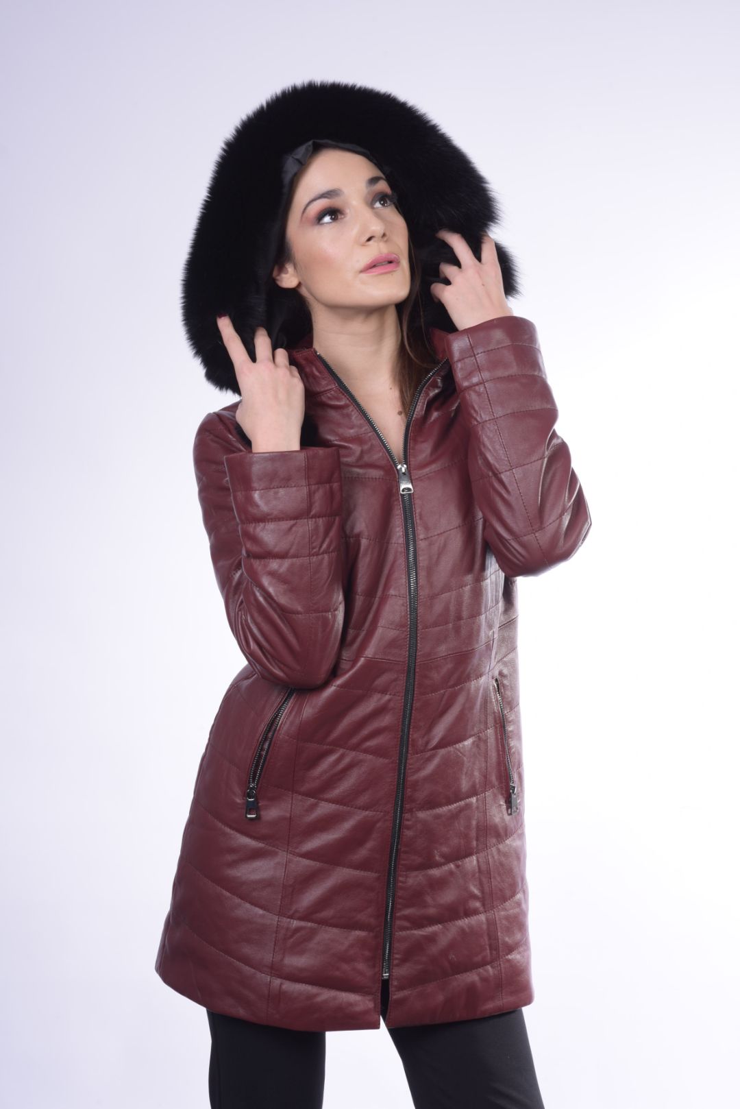 • Προσθαφαιρούμενη δερμάτινη κουκούλα με γούνα αλεπού στον γιακά.