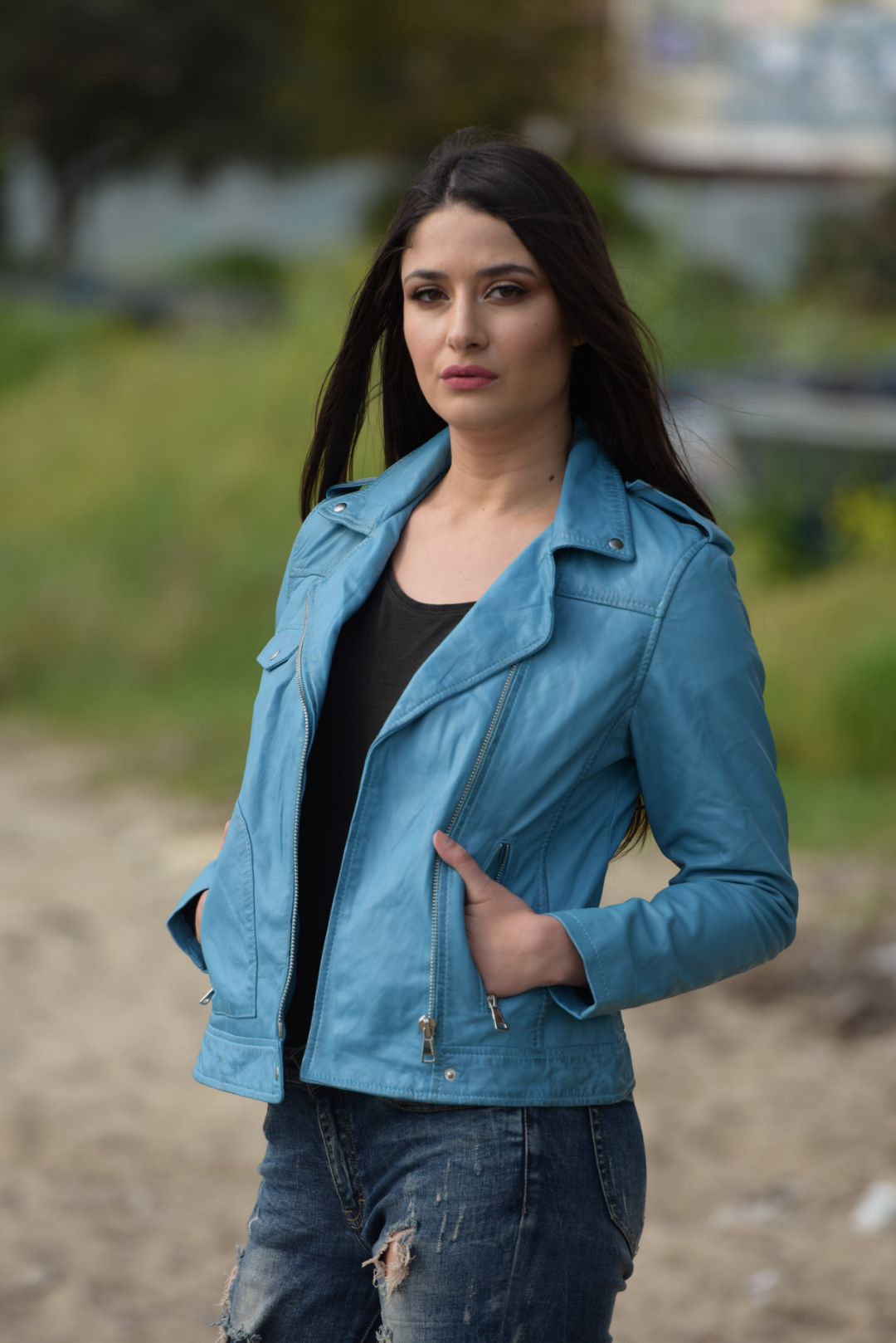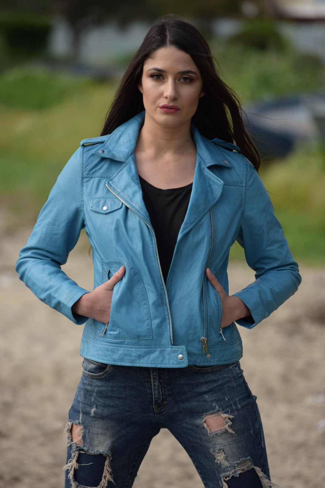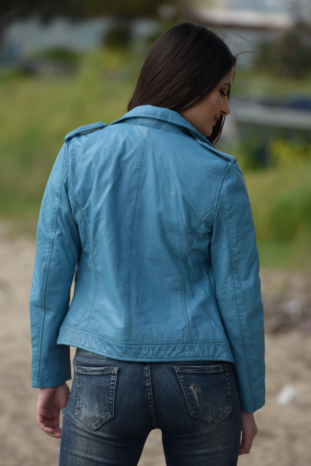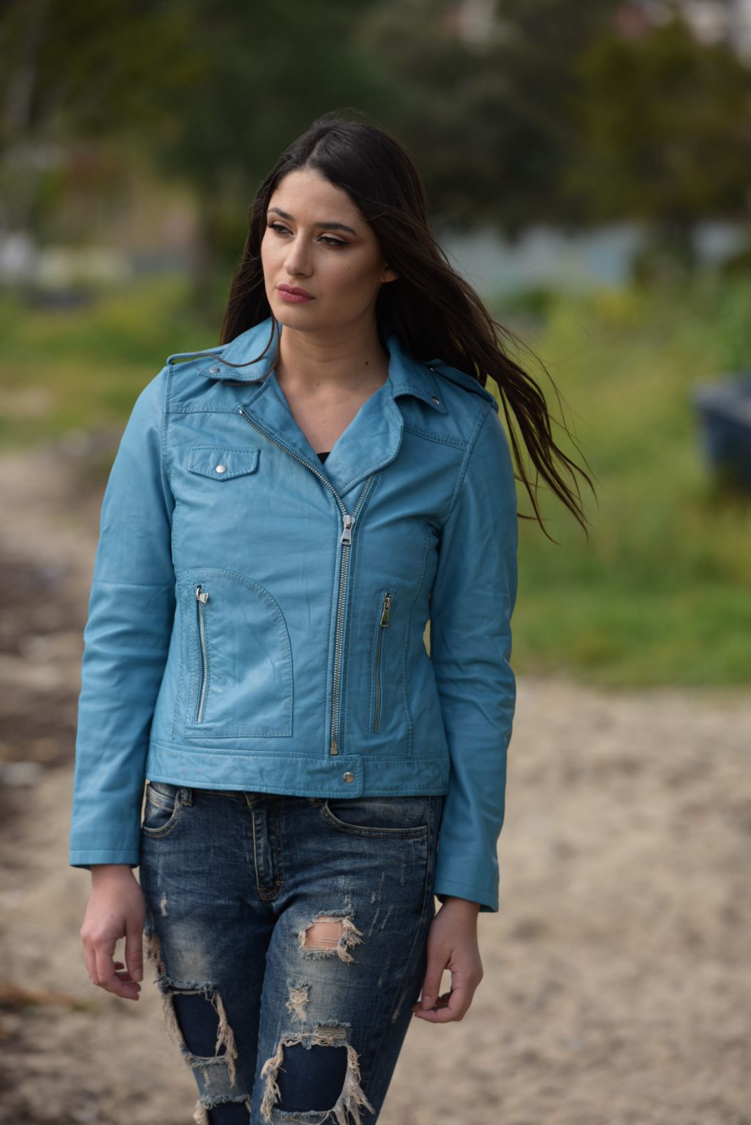 • Γυναικείο biker μπουφάν από αρνί δέρμα σε κατεργασία washed.
