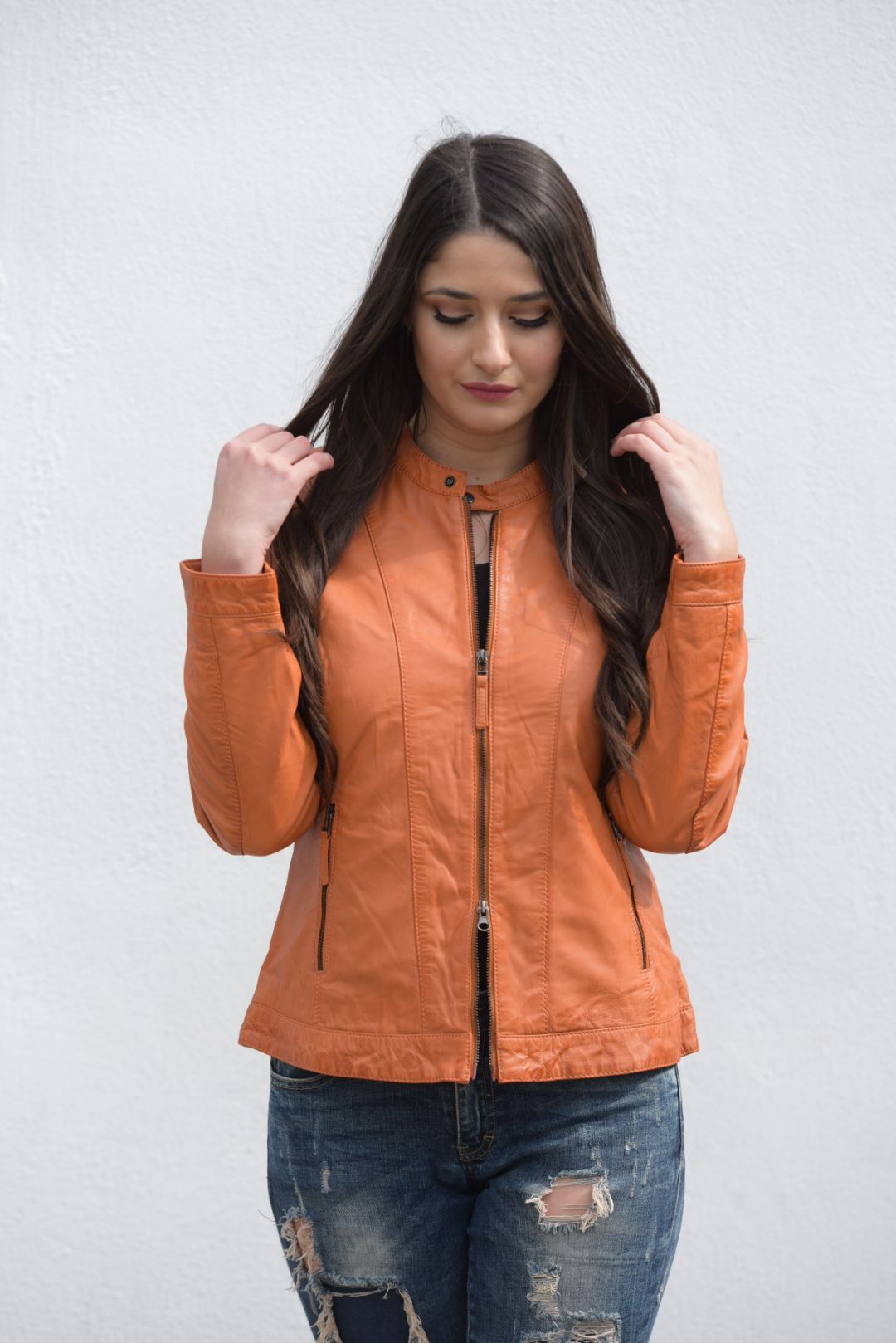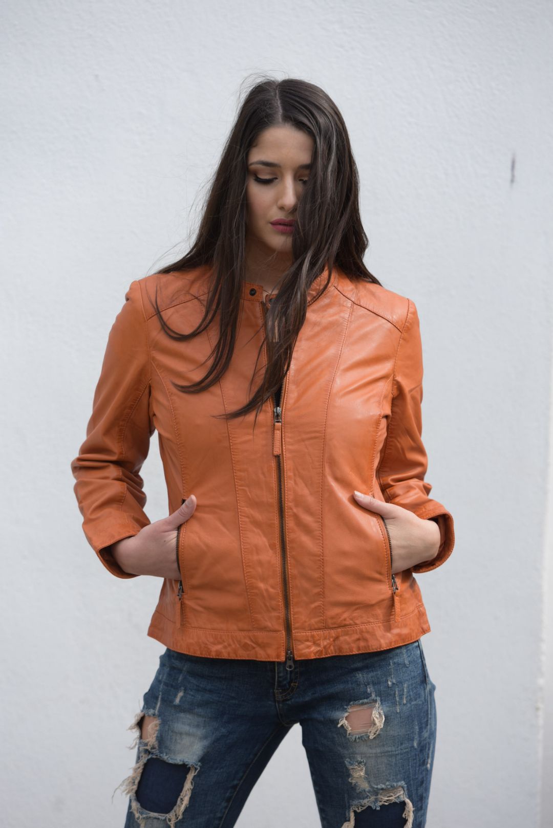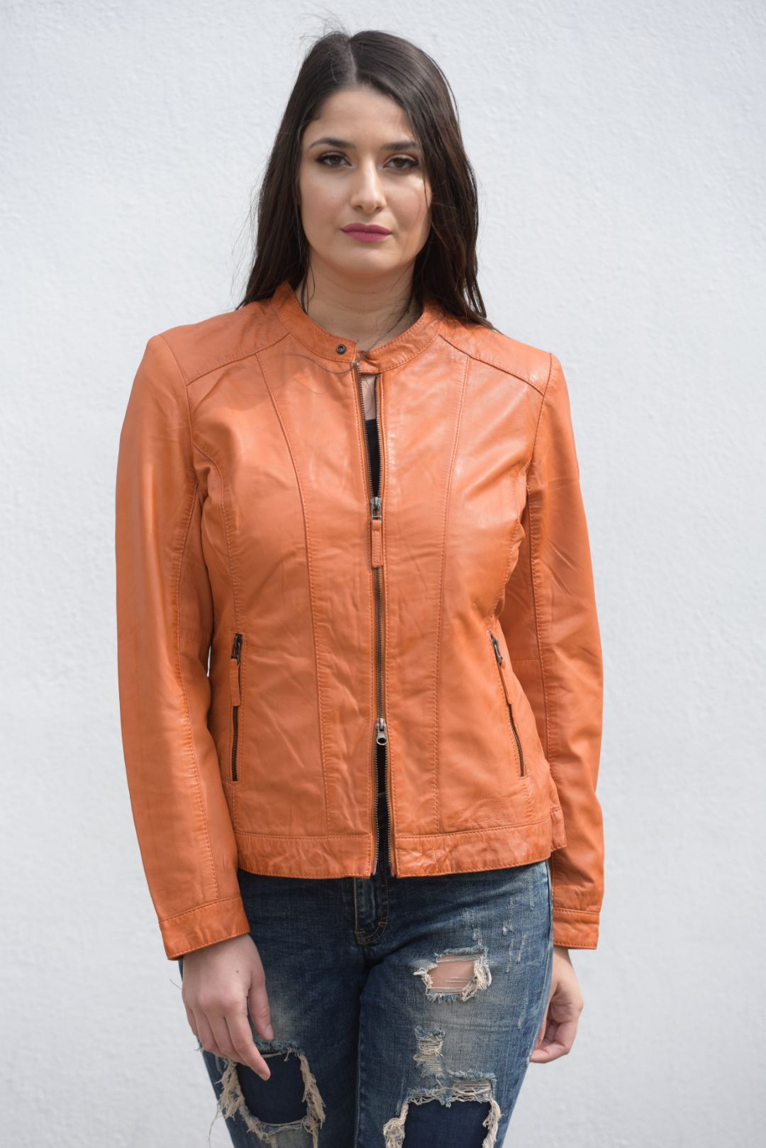 • Γυναικείο μπουφάν από γνήσιο αρνί δέρμα με κατεργασία washed.