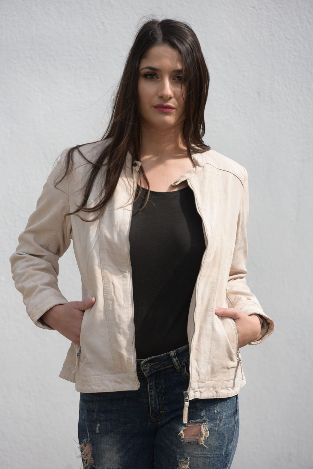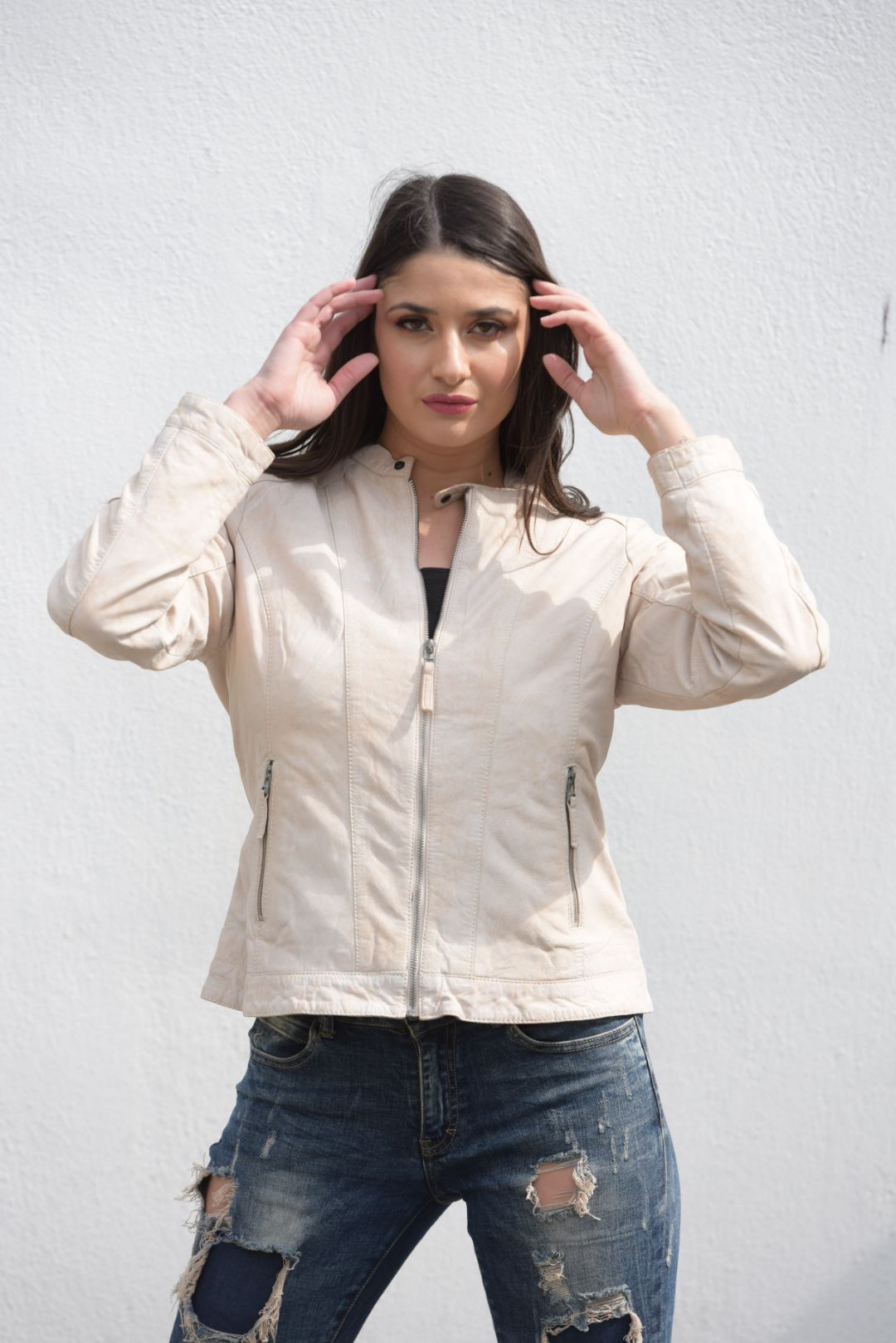 • Γυναικείο μπουφάν από γνήσιο αρνί δέρμα με κατεργασία washed.