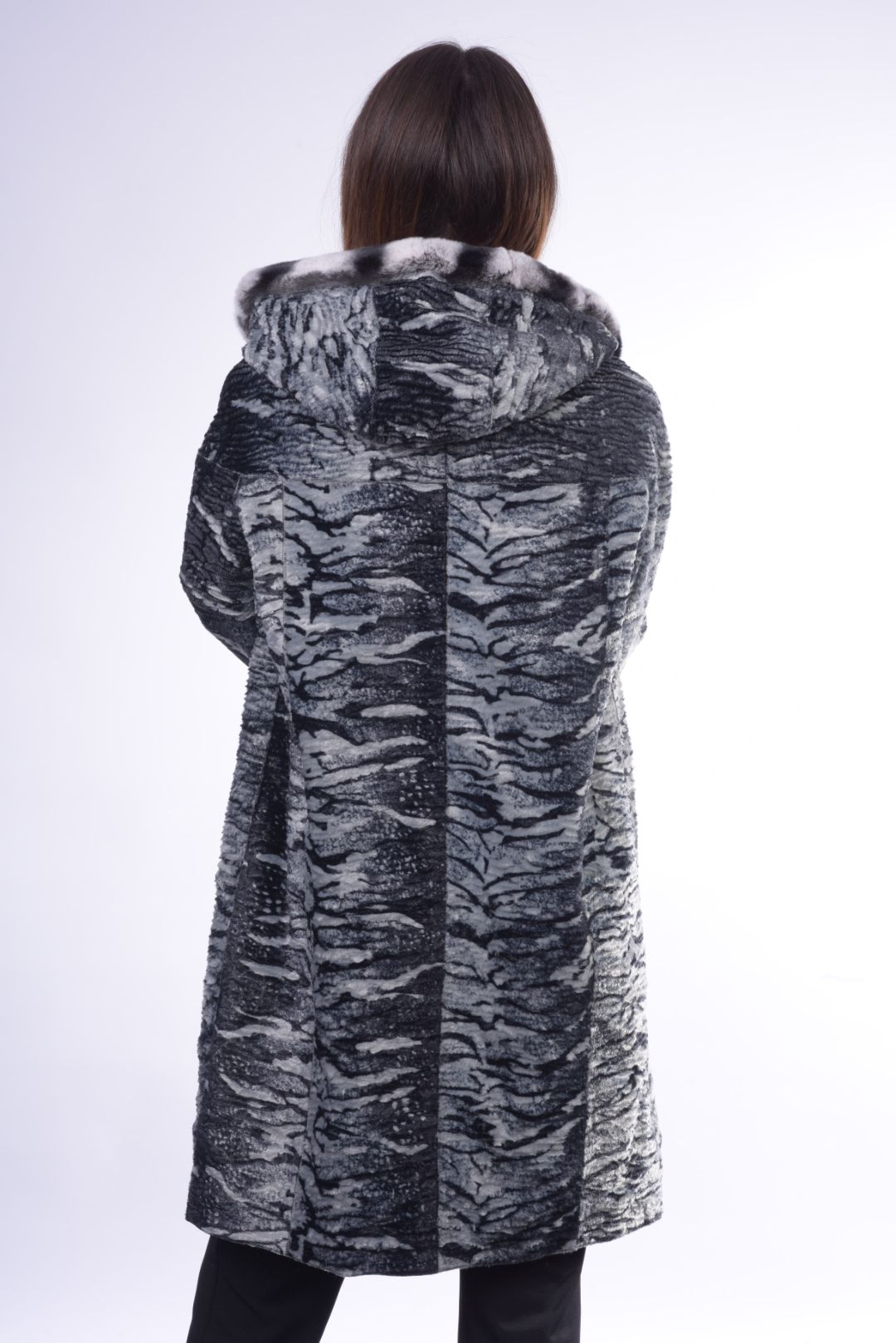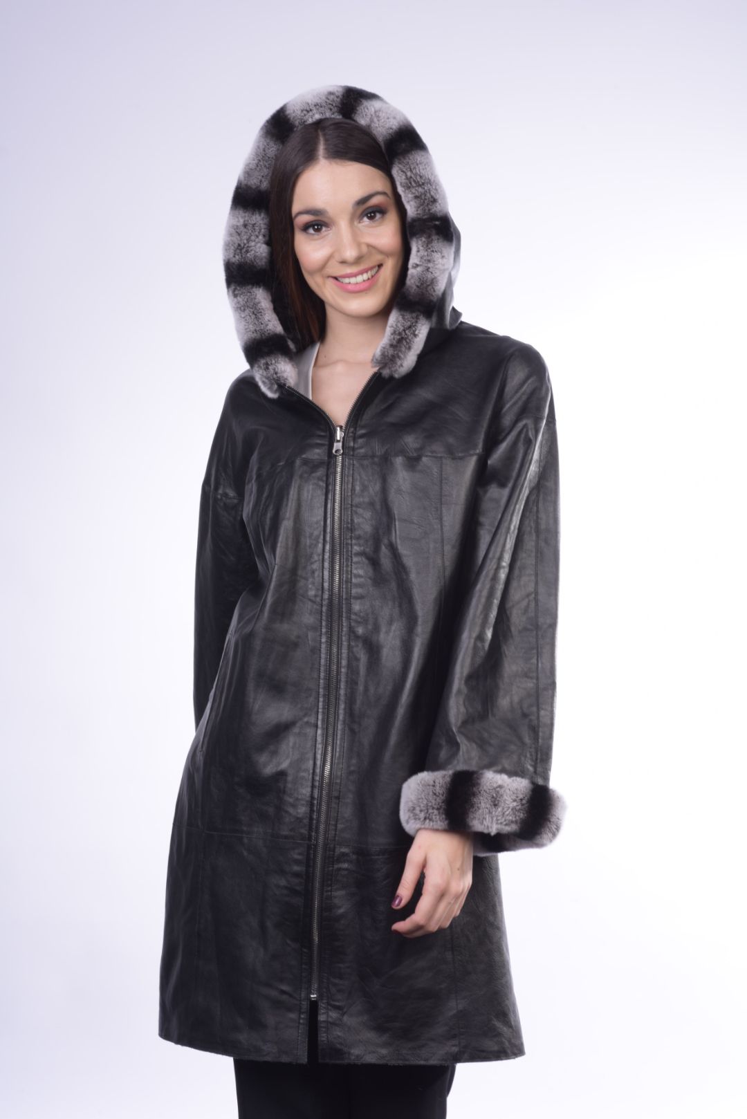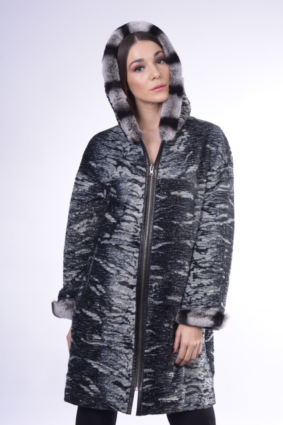 • Γούνα τσιντσιλά περιμετρικά της κουκούλας και των μανικιών.