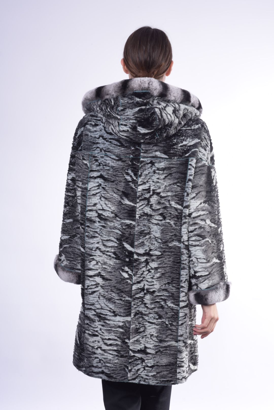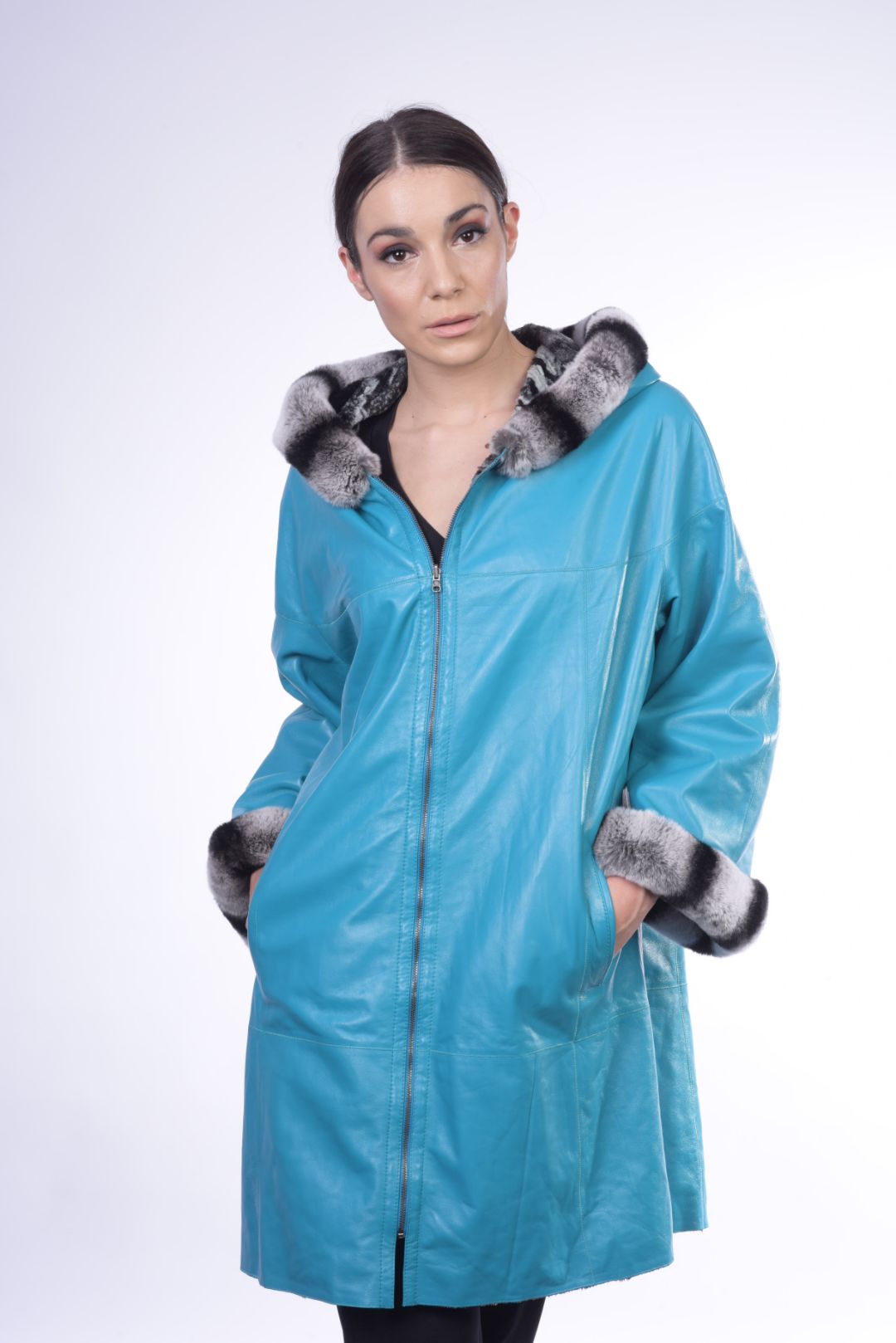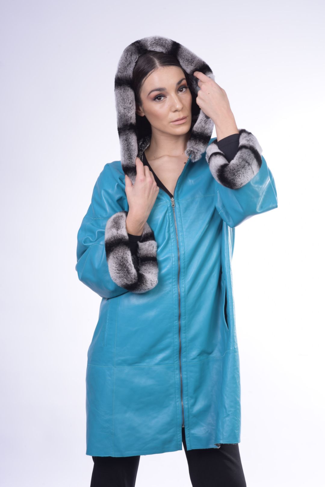 • Γούνα τσιντσιλά περιμετρικά της κουκούλας και των μανικιών.
