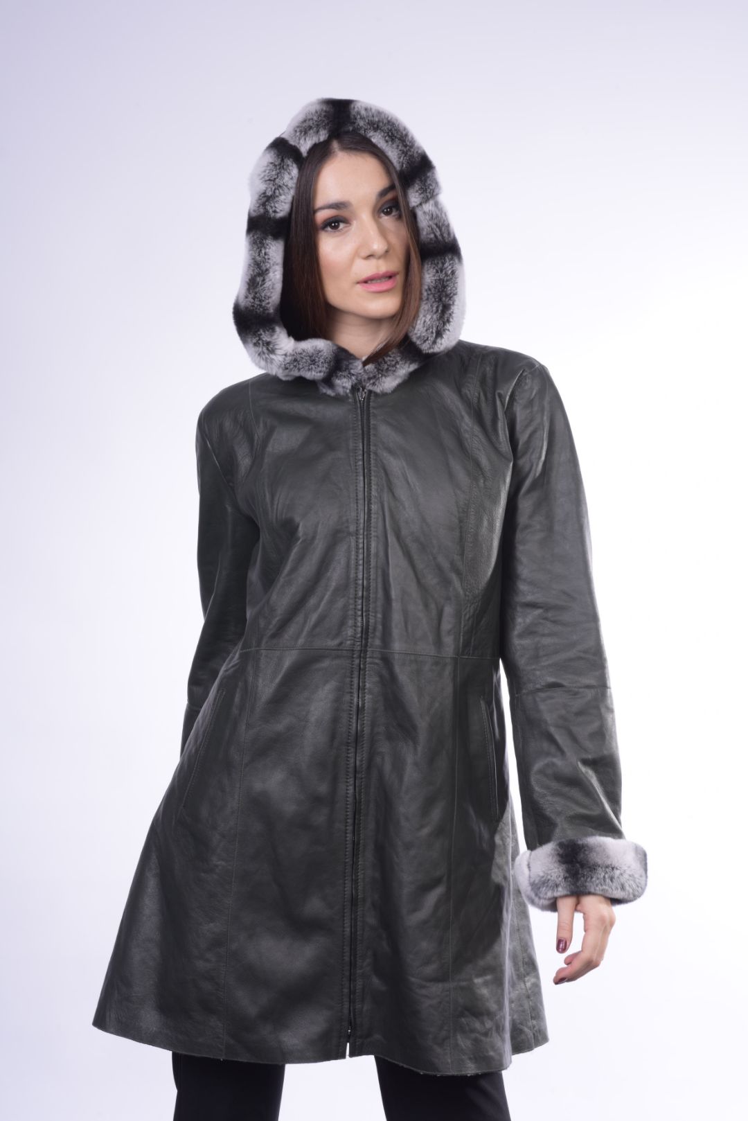 • Γούνα τσιντσιλά περιμετρικά της κουκούλας και των μανικιών.