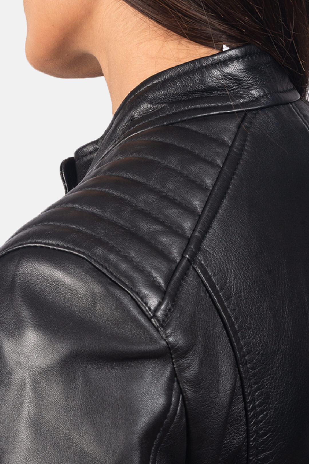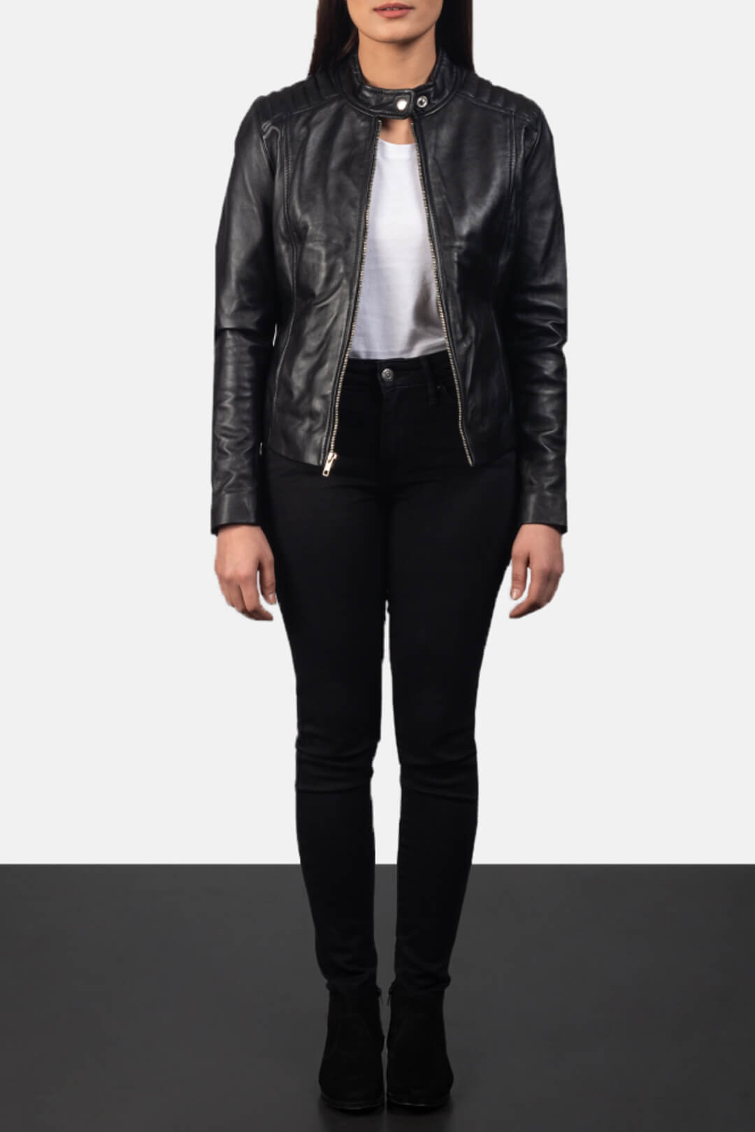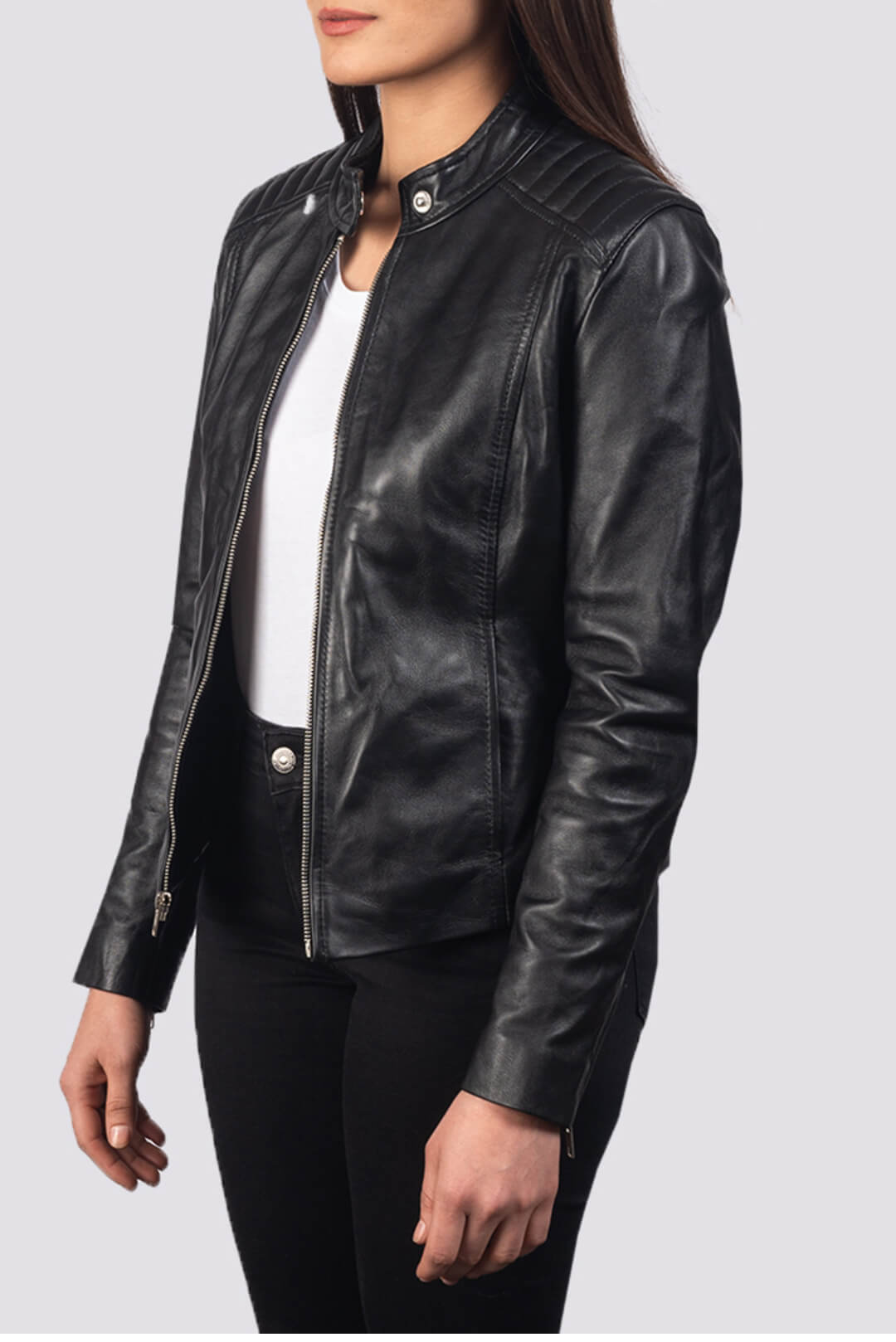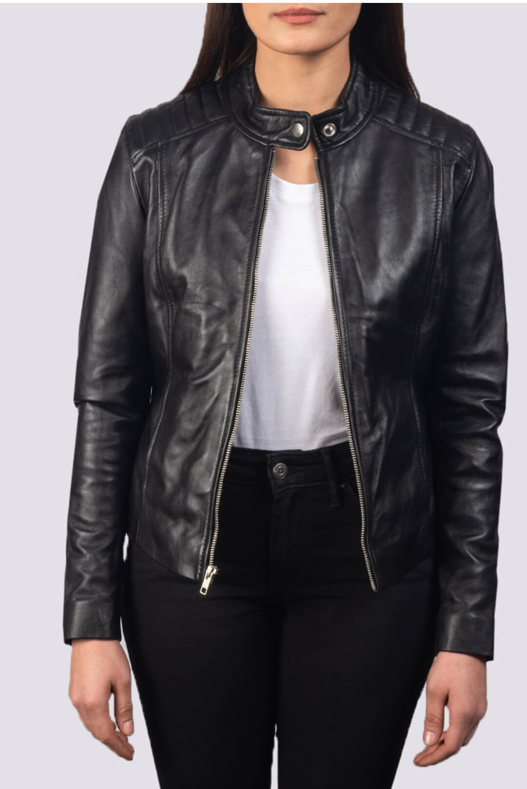 Classic Woman’s Kelsee Black Leather Biker Jacket worn all year long. Get in Style. Worn any time and anywhere. Many colors to choose from. Add this to your wardrobe. Be in style. Be cool!