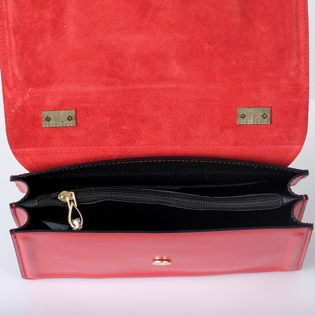 Σικ κόκκινη σουέτ τσάντα Hugo Boss. Κρατιέται στο χέρι ή χιαστί. Για εμφανίσεις από το πρωί έως το βράδυ.
